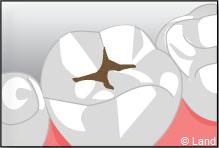 Un inlay reconstitue l’anatomie dentaire en comblant une cavité taillée dans la dent.