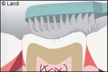Une dent a une surface occlusale servant à la mastication, zone anfractueuse pourvue de sillons plus ou moins importants et de cuspides (petites bosses). Les bactéries et résidus alimentaires formant la plaque dentaire se déposent facilement sur cette surface.